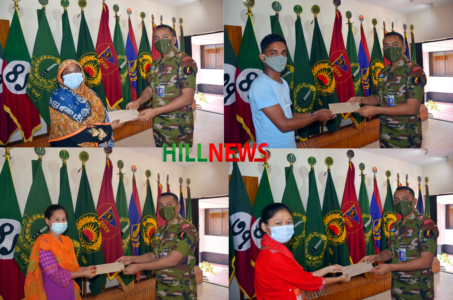 বাংলাদেশ সেনাবাহিনী, ৩০৫ পদাতিক ব্রিগেড রাঙামাটি সেনা রিজিয়নের উদ্যোগে রাঙামাটি রিজিয়নের দায়িত্বপূর্ণ এলাকার ৮জন পাহাড়ি-বাঙালি জনগোষ্ঠীর অসহায় গরীব ও দুস্থকে নগদ অর্থ সহযোগিতা করা হয়েছে। রবিবার (১১জুলাই ২০২১) রাঙামাটি রিজিয়নের প্রান্তিক হলে “নিয়মিত মানবিক সহায়তা কর্মসূচি’র আওতায় এই ৮জন পাহাড়ি-বাঙালী অসহায় গরীব ও দু:স্থ মানুষের মাঝে শিক্ষা, চিকিৎসা ও অন্যান্য খরচ বাবদ সর্বোমোট ৭৫,০০০/- হাজার টাকা নগদ অর্থ প্রদান করা হয়।