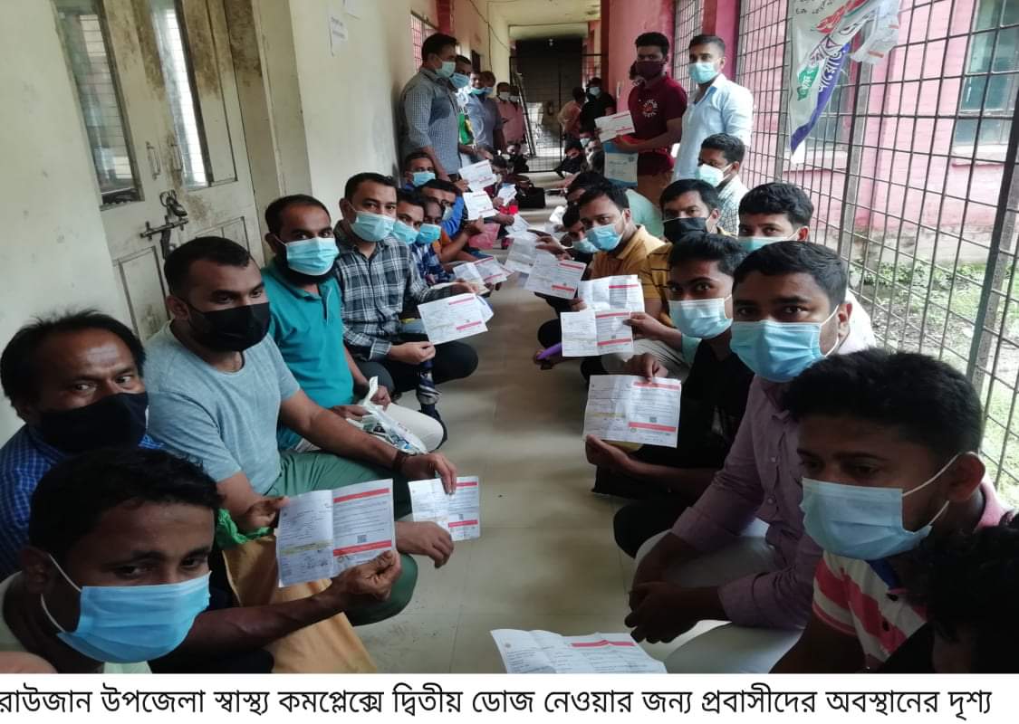 রাউজানে ৩ ঘন্টা অপেক্ষার পর টিকার দ্বিতীয় ডোজ পেলেন শতাধিক প্রবাসী