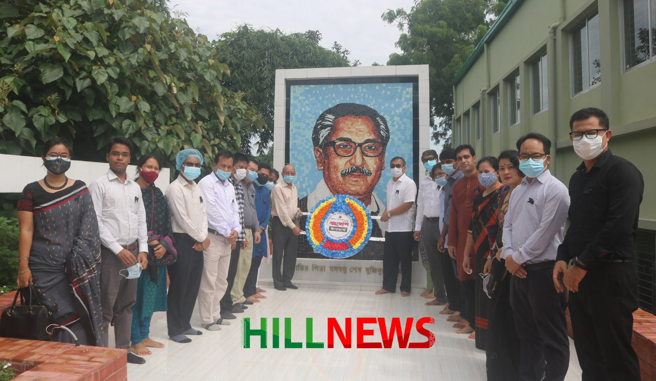 সকাল ৯টায় ভেদভেদিতে অবস্থিত জাতির পিতা বঙ্গবন্ধু শেখ মুজিবুর রহমান এর ম্যুরালে শ্রদ্ধা নিবেদন করে পুস্পস্তবক অর্পণ করেন বিশ্ববিদ্যালয়ের উপাচার্য প্রফেসর ড. প্রদানেন্দু বিকাশ চাকমা, রেজিস্ট্রার (ভারপ্রাপ্ত) অঞ্জন কুমার চাকমা, শিক্ষক, কর্মকর্তা ও কর্মচারীবৃন্দ।