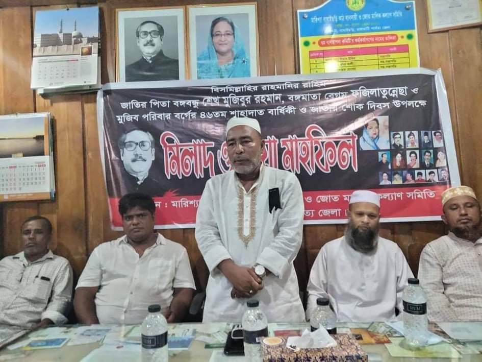 রাঙামাটির বাঘাইছড়িতে জাতির জনক বঙ্গবন্ধু শেখ মুজিবুর রহমান ও বঙ্গমাতা ফজিলাতুন্নেছা মুজিব পরিবার বর্গের ৪৬তম শাহাদাৎ বার্ষিকী উপলক্ষে মারিশ্যা বাঘাইছড়ি কাঠ ব্যবসায়ী ও জোত মালিক কল্যাণ সমিতির উদ্যোগে মিলাদ ও দোয়া মাহফিল অনুষ্ঠিত হয়েছে।